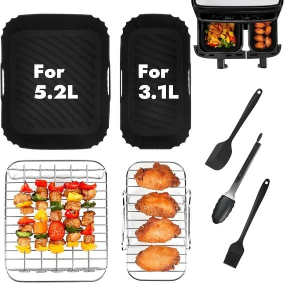 Příslušenství AIRFRYER pro 5,2 l a 3,1 l Air FRYER DUAL: Grilovací rošt horkovzdušná fritéza a horkovzdušná fritéza silikonová forma jsou kompatibilní s Tefal EY9018 Dual Easy Fry 8,3 l. Speciálně pro 1 velkou a 1 malou horkovzdušnou fritézu různých velikostí (5,2 l a 3,1 l)