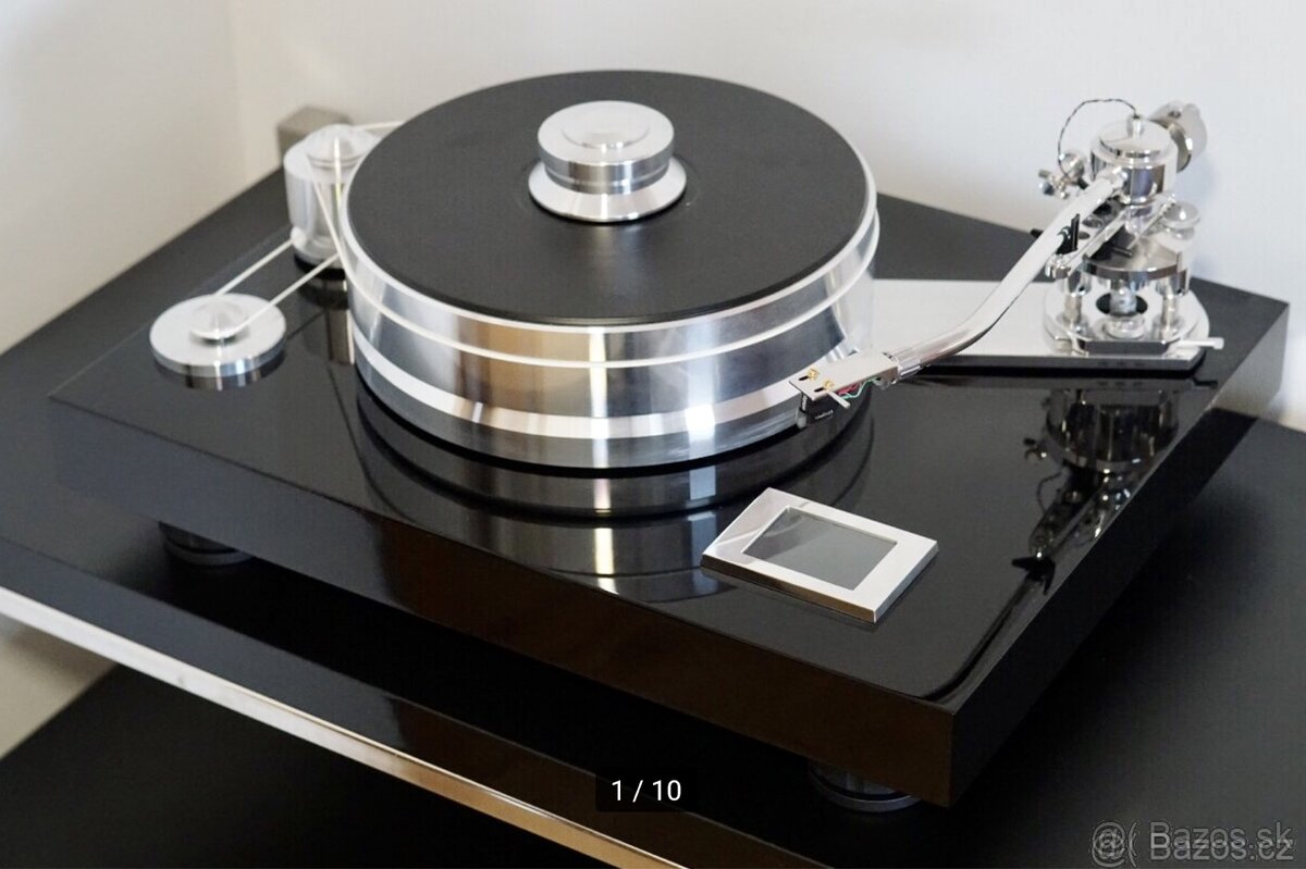 High End gramofon bez kompromisů v kvalitě a konstrukci, vyroben jako oslava 20. výročí založení firmy. Magnetické nohy a TPE polštáře oddělují rezonance od MDF šasi, které je vyplněno kovovým granulátem. 10,55kg vážící talíř s tichým chodem je uložen v keramických ložiscích a levitující na magnetech. Nové 12″ raménko je originální konstrukcí firmy Pro-ject. Díky velkému množství nastavení a výběru vhodných protizávaží, je možno namontovat na raménko téměř každou gramofonovou vložku. Bez nadsázky je možno říci, že se jedná o audiofilský zázrak, které představuje špičku toho, co Pro-ject dokáže v oblasti přesného strojírenství a lásce k hudbě. Je vybaven elektronickým měničem otáček. Gramofon je standartně vybaven kvalitním 5pin-RCA kabelem, na přání je možno dodat s kabelem 5pin-XLR