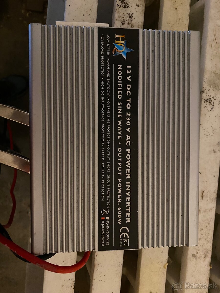 Menič prevádza 24V DC na 230V AC (modifikovaná sínusová vlna).