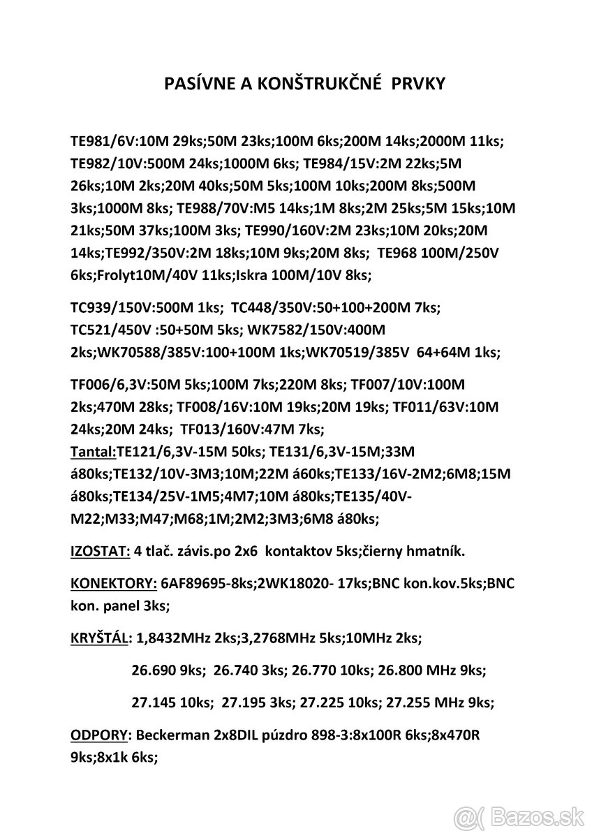 Predám konštr.prvky,odpory,kondenzátory Tesla.Nové,nepoužité,viď.prílohy,na cene sa dohodneme.