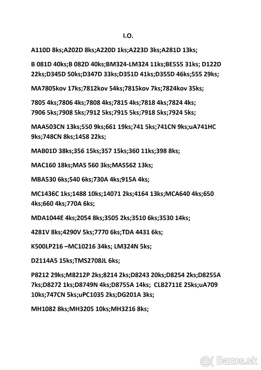 Predám polovodičové súčiastky - diody;tyristory;triaky;tranzistory;integrované obvody,nové,nepoužité, produkcie Tesla a RVHP.Viď.prílohy,cenu určite dohodneme.