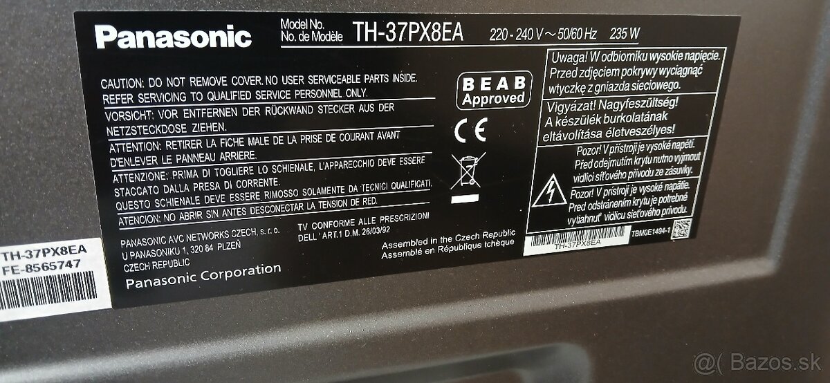 PANASONIC TH-37PX8EA plazma