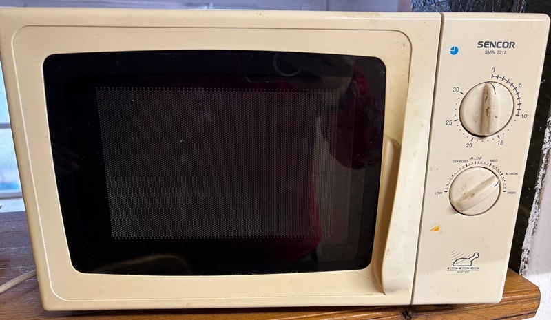 Mikrovlnka je plne funkčná, odfotil som ju ako zohrieva čaj.