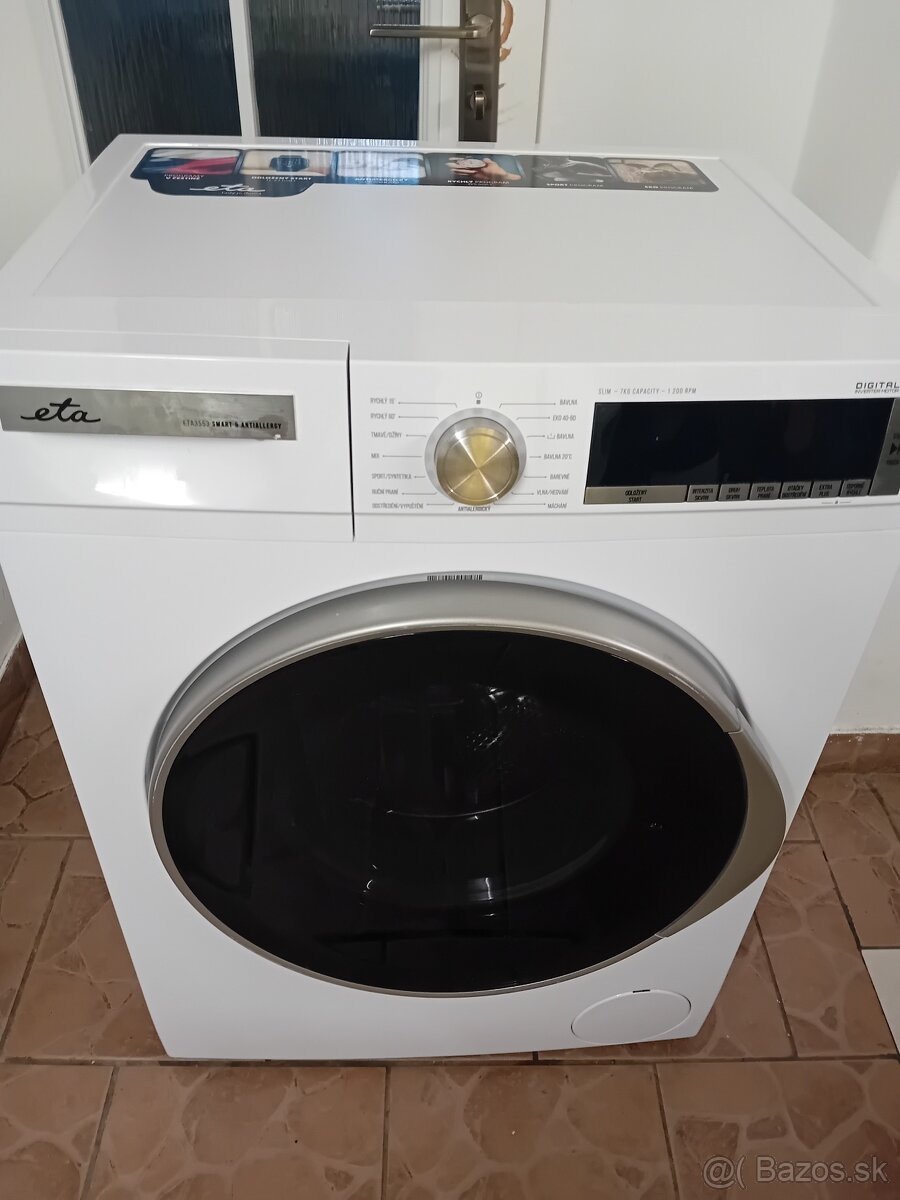 Predám práčku slim prevedení značky eta na 7kg je smart úsporná energetická trieda A ++++ je vhodná do menších kúpeľných viac info po tele práčka je vibave ako vifi blutut