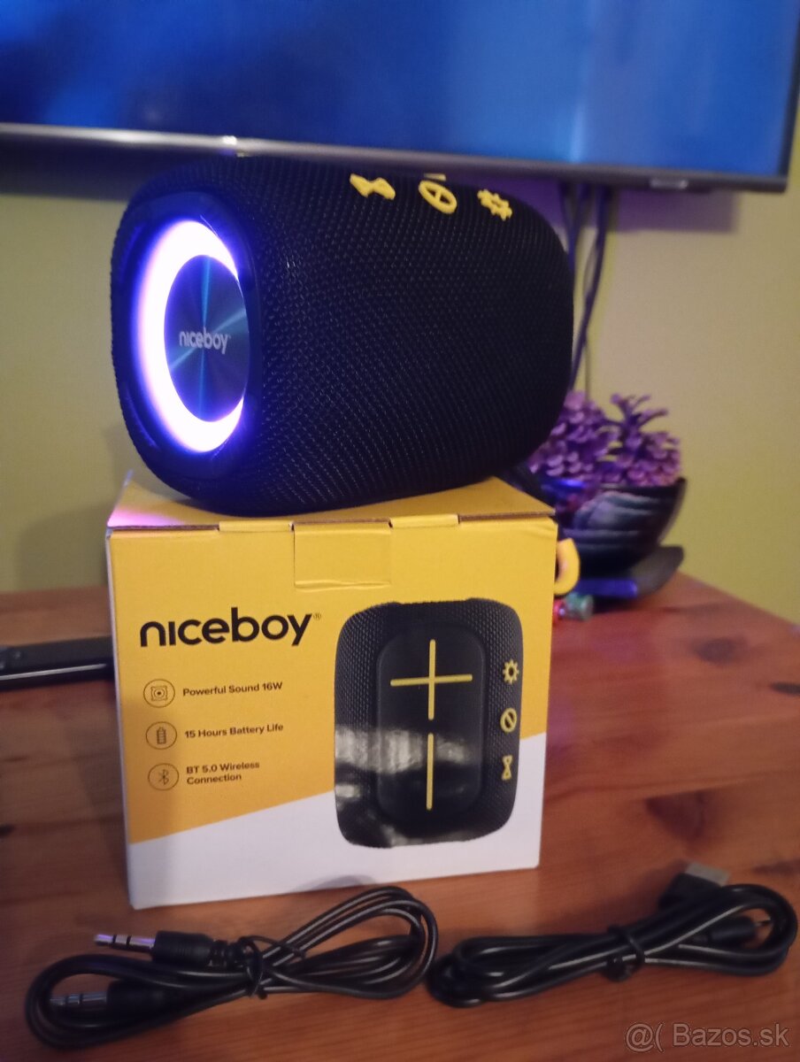 Predám reproduktor Niceboy. Nevhodný darček, nikdy nebol použitý. Výkon zvuku je 16 W.