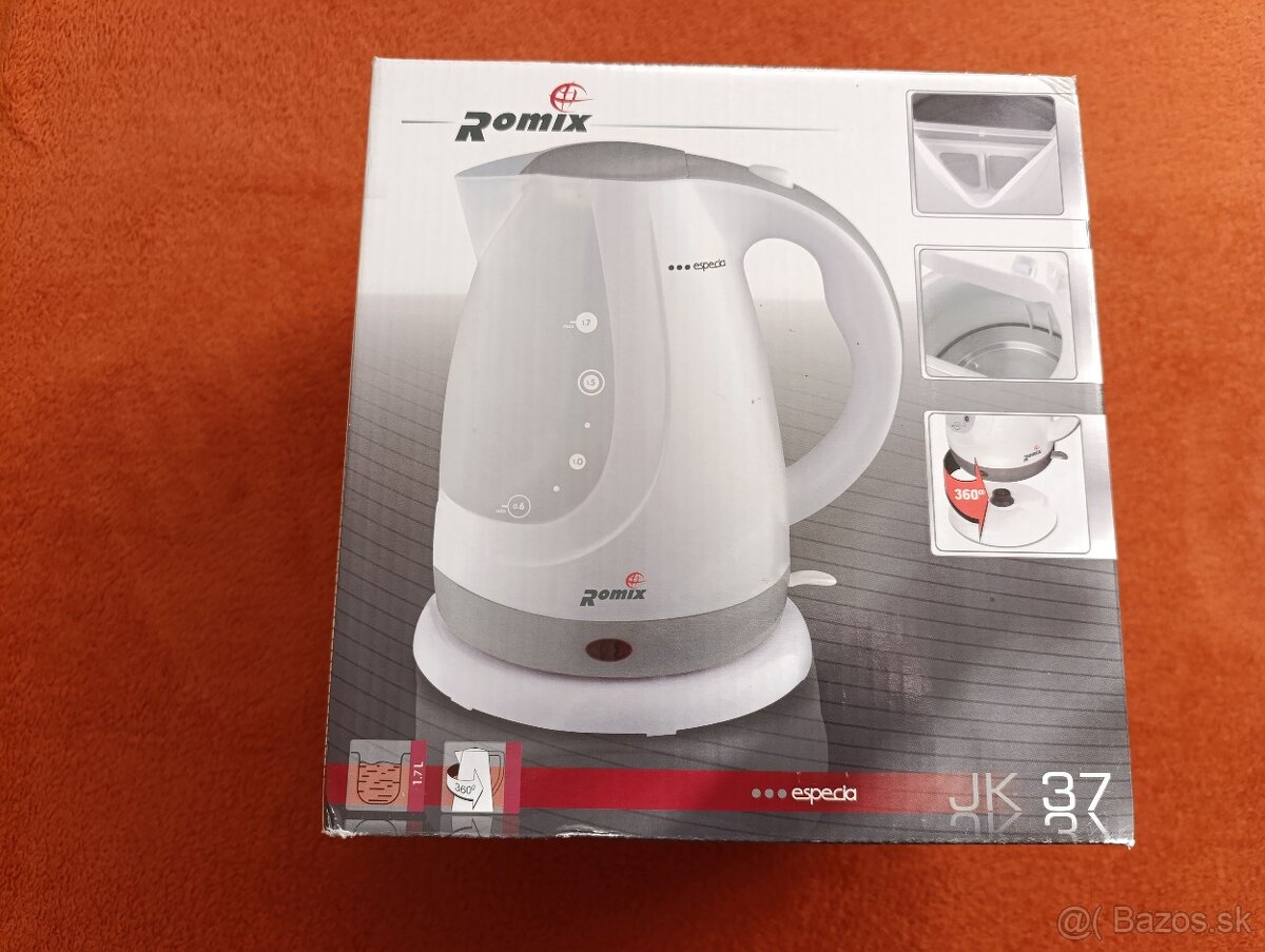 Predám rýchlovarnú kanvicu značky ROMIX, objem 1,7 litra. Kanvica je úplne nová , vôbec nepoužívaná, v originál krabici. Rozbalila som ju len pre fotenie.