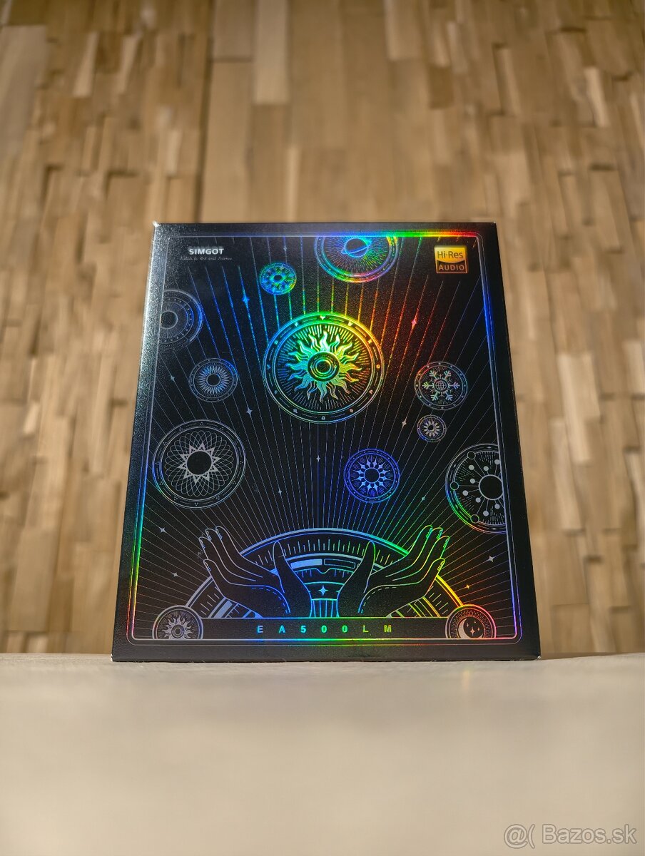 Nové nepoužívané IEM (monitorovacie) slúchadlá Simgot EA500 LM. Balenie obsahuje slúchadlá, dva odpojiteľné káble (1 nadštandard), puzdro, 3 páry vymeniteľných zvukových trubíc (1 pár je na slúchadlách, 2 páry sú pribalené) s náhradnými o-krúžkami a 2 sady stupľov (1 sada nadštandard).