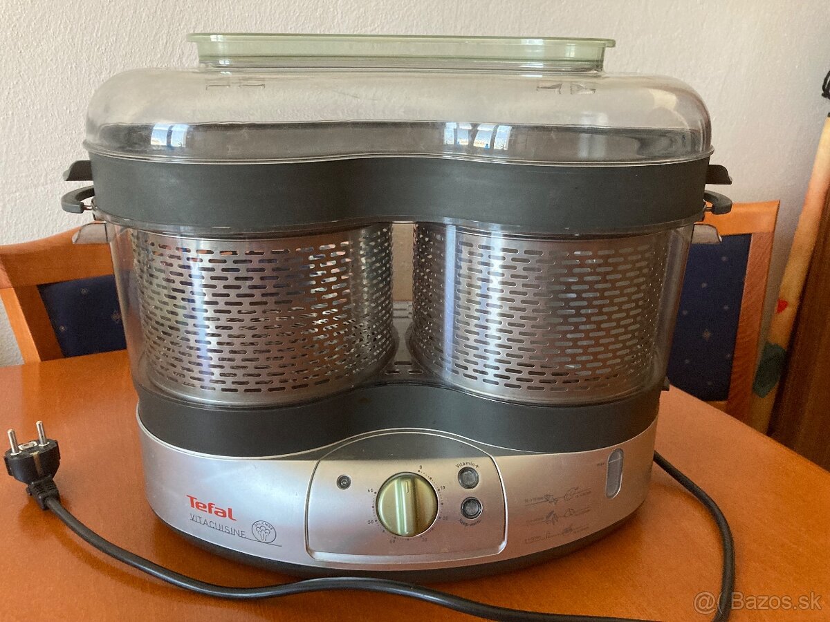 Predám parný hrniec TEFAL.S dvoma antikorovýmikvošmi s nádobou na ryžu s časovačom.Naraz sa dá uvariť celý obed(prilohu meso aj polievku alebo omáčku.)Je dobrým pomocníkom pre zdravú stravu aj pri diétach.cena:45€.