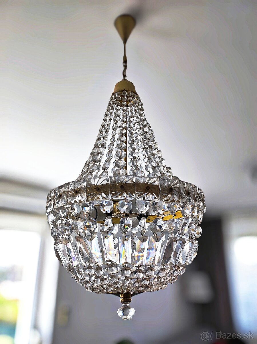 Luster kryštálový retro - [11.1. 2026]Kryštálový luster 50.ročný krásny funkčný stav 3.bodovy.ponuknite dohodneme sa