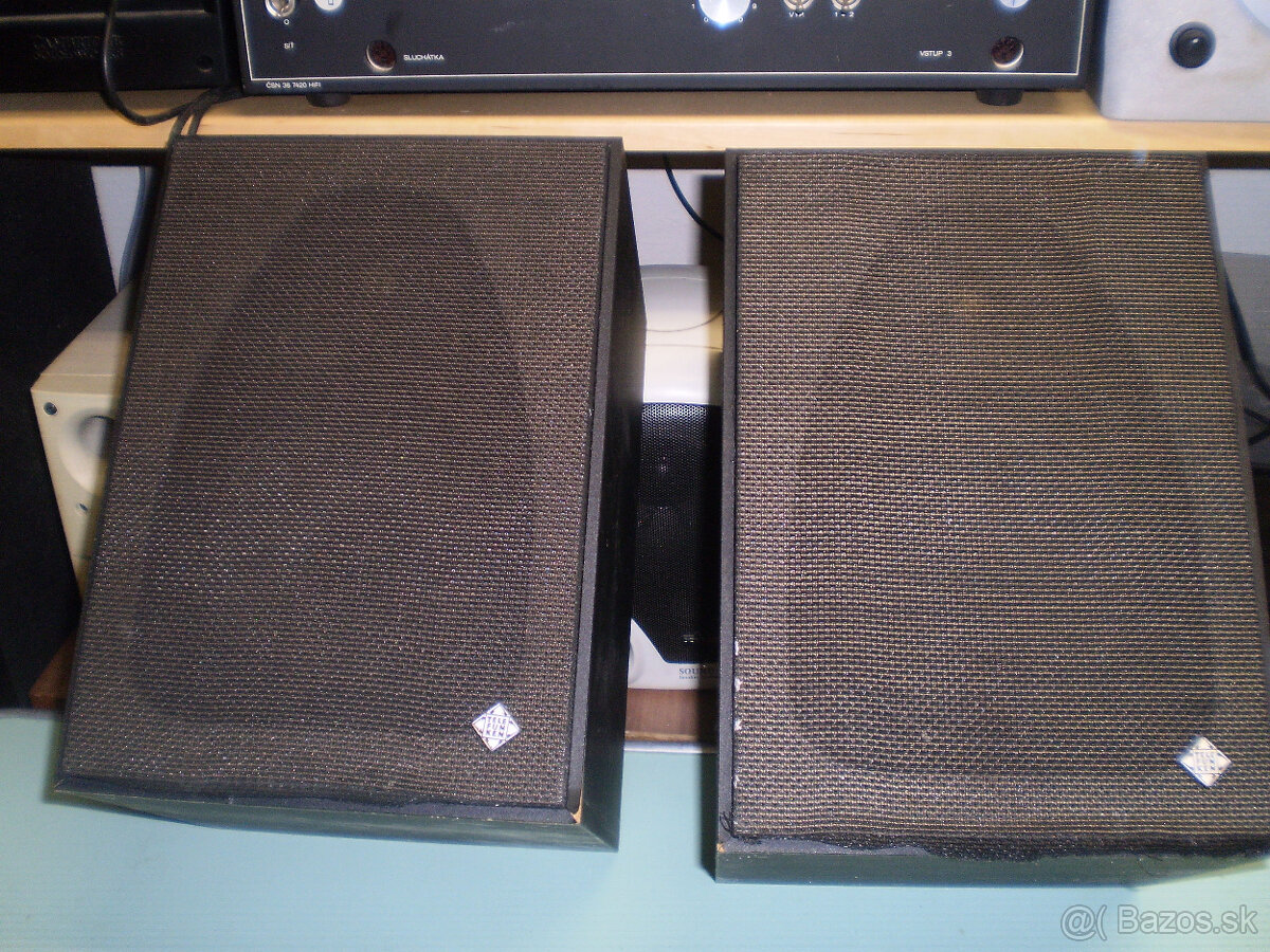 Osadenie stredobas Telefunken+výškáč Videoton.Slušná výhybka.Spĺňali vtedajšiu Hi-Fi normu DIN 45500.Hrajú veľmi solídne.Vhodné na chatu,terasu,alebo do garáže.Osobný odber.