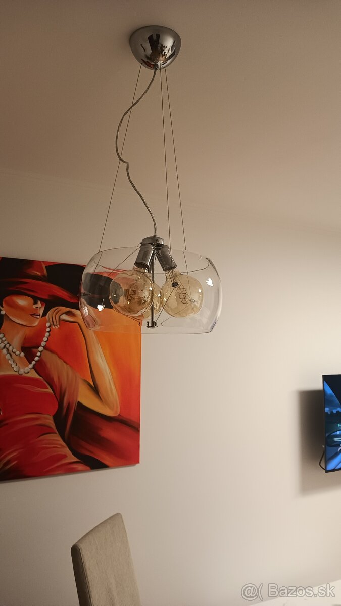 Predám závesné stropne svietidlo priemer 50cm - [24.12. 2025]Predám závesné stropné svietidlo. Priemer 50 cm, výška tienidla 21cm. Materiál sklo, kov. Vrátane LED žiaroviek. Používané ako nové.