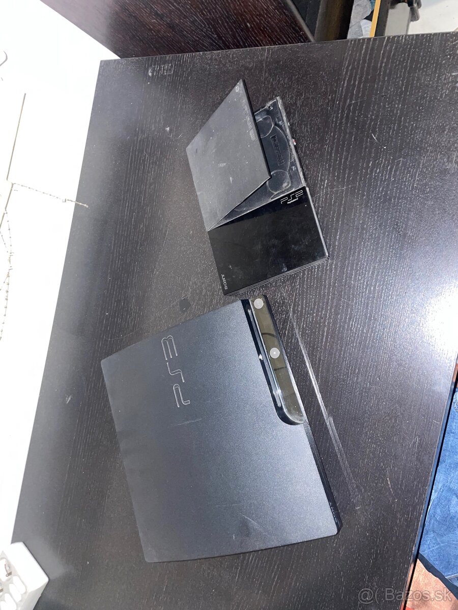 Predám ps 2 a ps3 obe konzoli plne funkčne zapojiť a hrať sa ku konzolam sú všetky káble tak isto aj ovládače originálne (niesu na foto )aj bezkablove repliky ku každej konzole asi 15-20 hier tiež plne funkčne cena za obe 100€ dôvod predaja nevyužívam to už