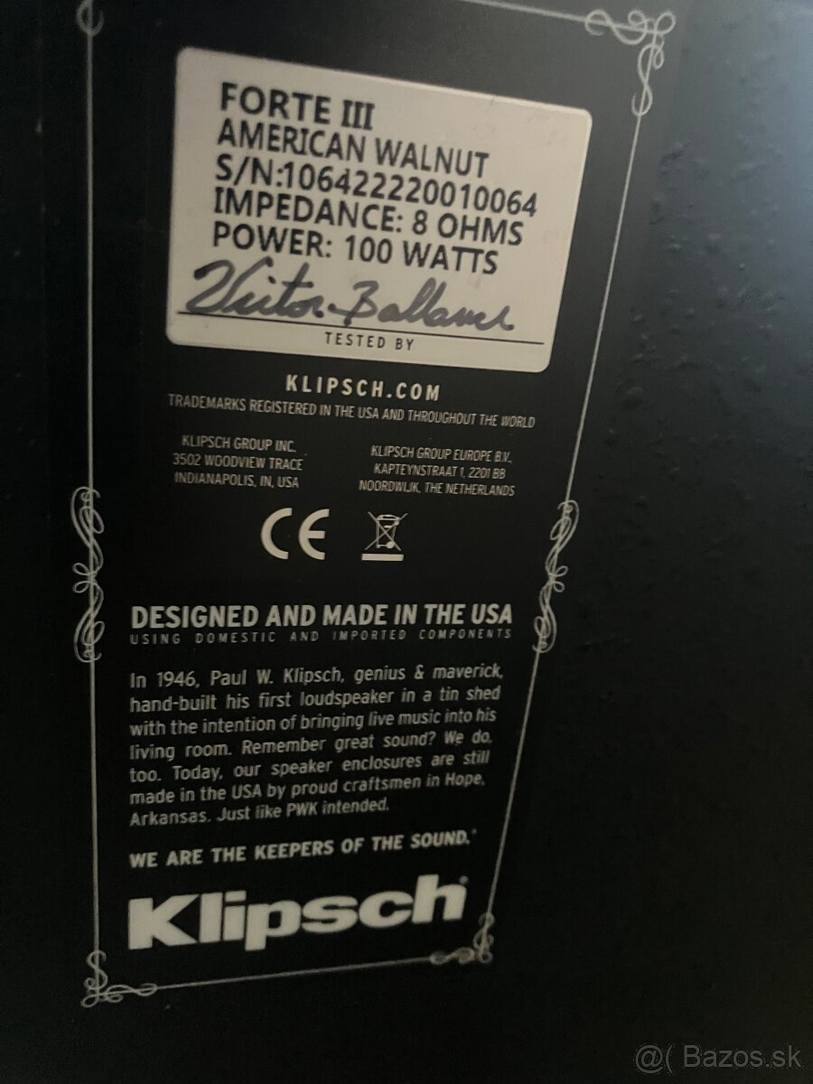 Predam- KLIPSCH FORTE III .100percentný stav. Kupovane 2022 na slovensku faktura balenie k dispozicii.Vázny záujem. .https://www.youtube.com/watch?v=EqROEUy7d5M.
