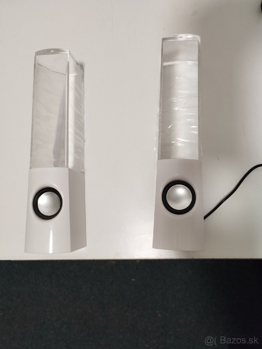 Predám reproduktory k telefónu,notebooku a podobne.Diody 4 farby a striekajuca voda podľa hudby.Repro 2x 3 wat. Na reproduktoroch je ešte ochranná folia.Ponuky poprosím na mail, číslo je vymyslené.Prgerujem osobný odber.
