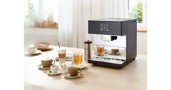 MIELE CM7500 A OBSW je presso stroj na zrnkovú kávu, ktorý Vám bude závidieť každá návšteva. S funkciou One-Touch for Two a AutoDescale bude obsluha prístroja maximálne jednoduchá. Cappuccinatore Vám umožní vyrobiť perfektnú mliečnu penu. O intenzívnejšiu arómu kávy sa postará funkcia AromaticSystem. Odkladacia plocha vyhrieva šálky, a tak sú kedykoľvek pripravené na použitie. Objem zásobníka na vodu je 2,2 litra a na kávu 500 gramov. Všetky programovateľné nastavenia máte prehľadne znázornené na dotykovom dipleji. Veľkú kávu, horúci čaj, alebo mliečnu penu - kávovar MIELE CM7500 v luxusnom čiernom prevedení zvládne všetko.