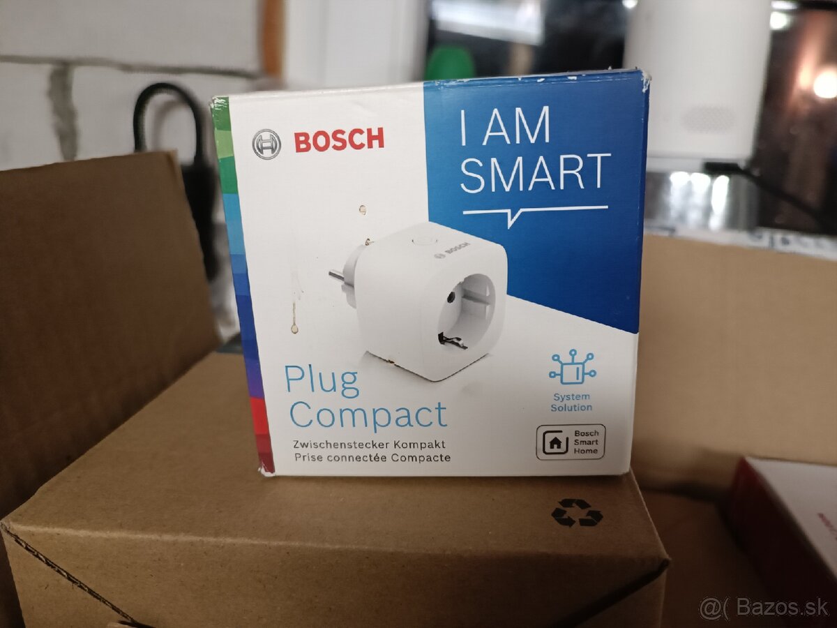 Predám inteligentnú zásuvku Bosch Plug Compact (model BSP-FZ2). Vďaka kompaktnému dizajnu neblokuje susedné zásuvky.