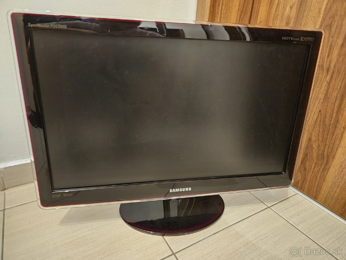 Predám TV Samsung SM P2470HD; s digitálnym DVB-T a analógovým TV tunerom, čas odozvy 5(G)ms; kontrast 50 000:1; uhly pohľadu 170/160; rozlíšenie 1920x1080; vstupné konektory: HDMI, DVI, analóg RGB; SCART, reproduktory, rubínová čierna; ultra tenký dizajn, jednoduchý stojan
