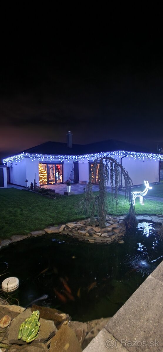 Na predaj svetelná reťaz farba studená biela,s miernim nádychom do modra/nebeská biela/ 500×LED,použitie interiér a exteriér,napájanie: do siete 220V, dĺžka 17m svetelná časť+1,5m napájanie hrubý profi zelený kábel,IP44.Svetelná reťaz Váš domov/prevádzku krásne oživí a rozžiari.Pri zdobení ju natiahnete na dĺžku 17m.