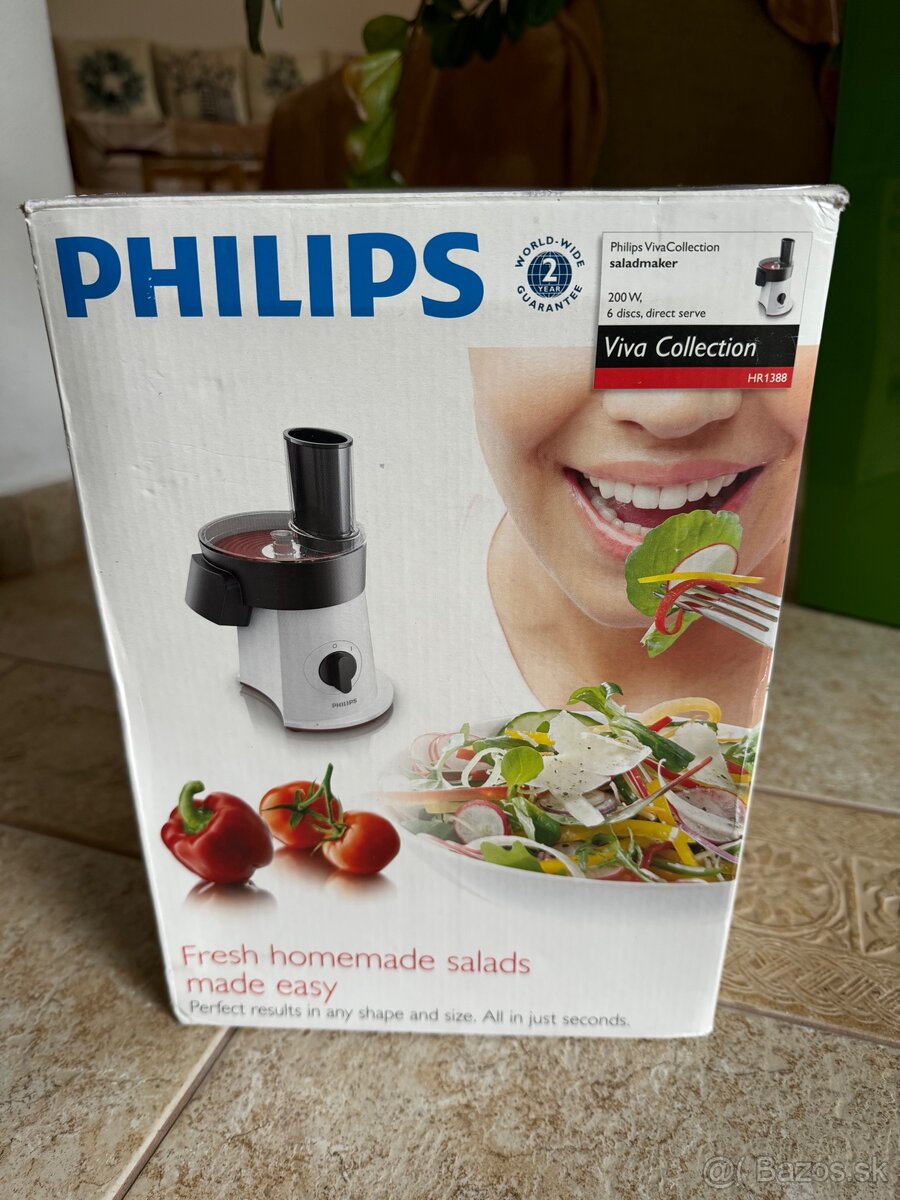 Multifunkčný praktický krájač PHILIPS HR 1388/80 rýchlo nakrája všetko potrebné-zemiaky, zeleninu, syr alebo mäso, vybavený je plniacou trubicou XI pre mimoriadne rýchle spracovanie všetkých prísad.Je úplne nový, nepoužitý, zabalený ešte v krabici, vhodný ako darček.