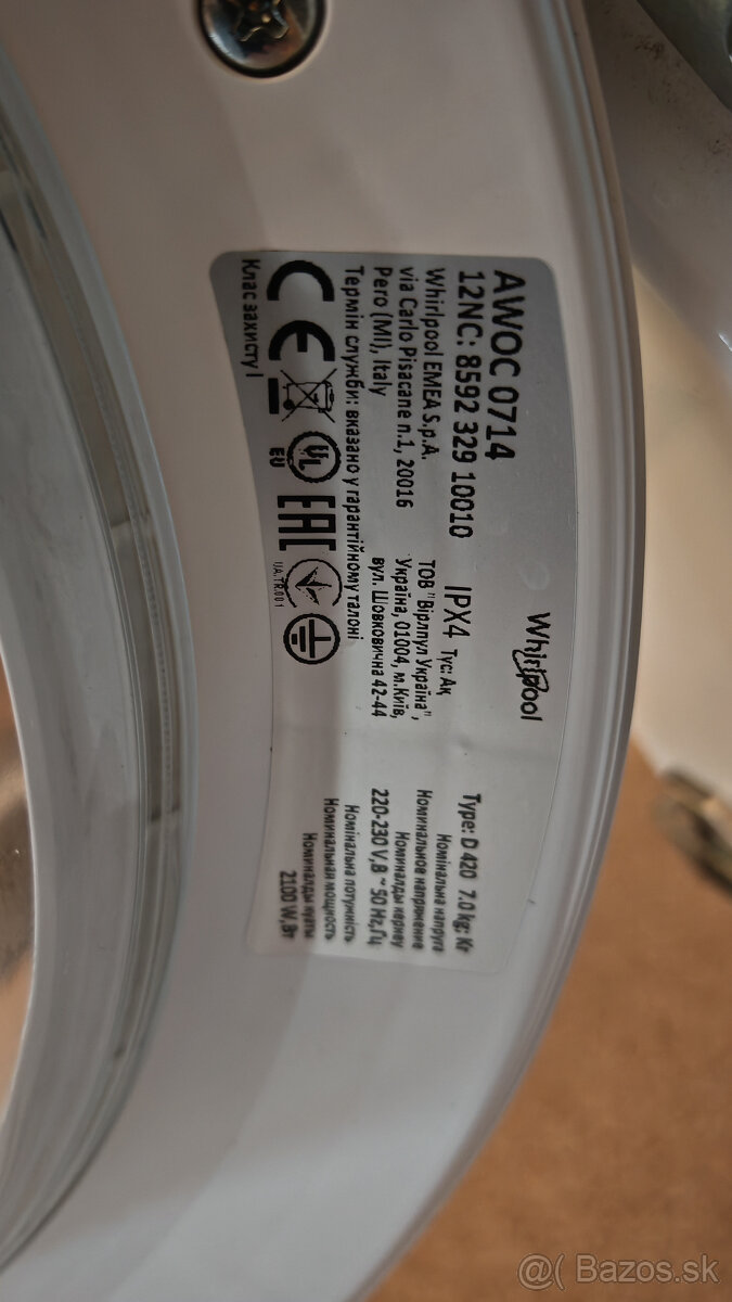 Predám vstavanu spredu plnenu pracku whirpool používanú cca 4 roky