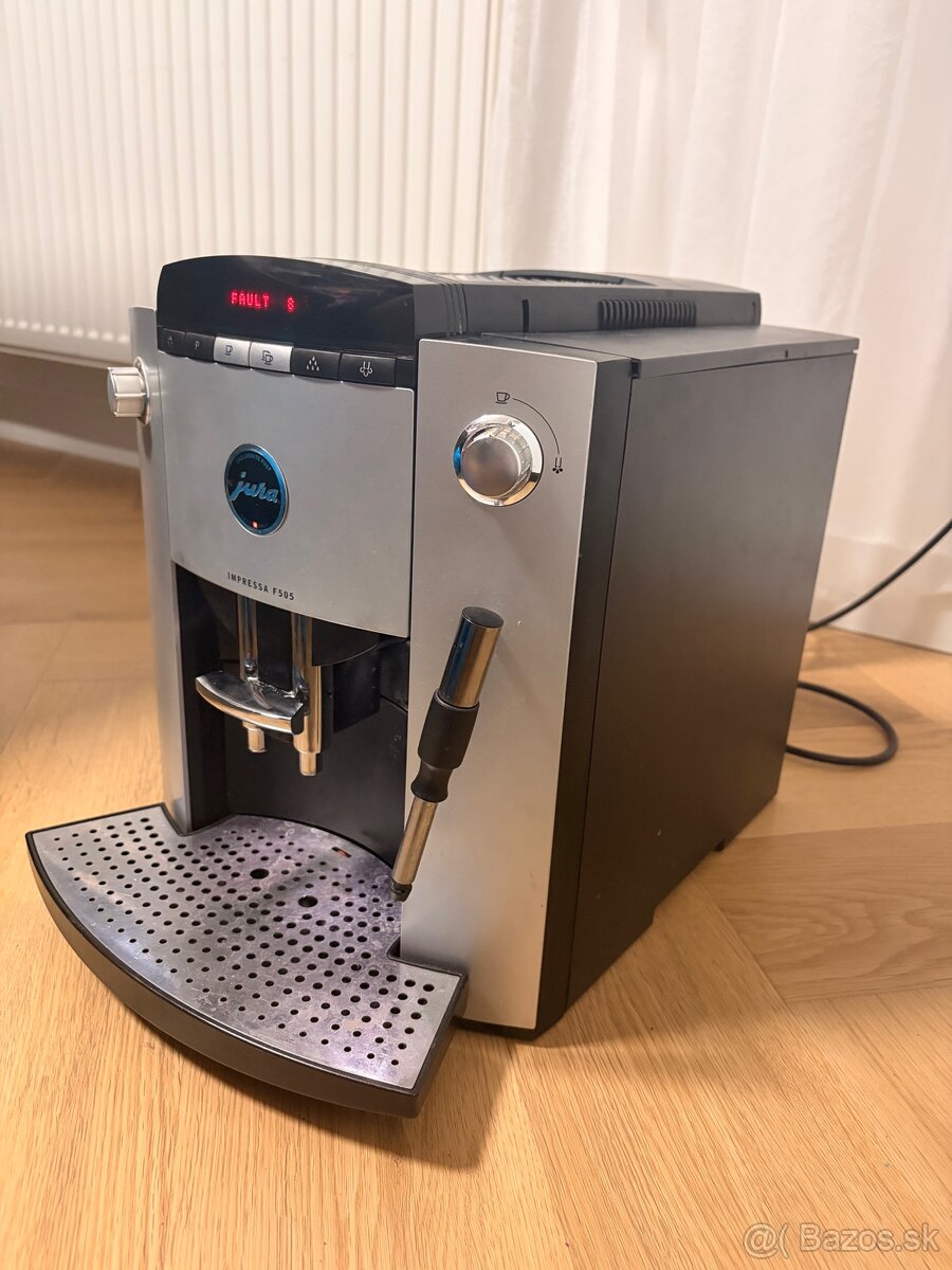 Predam kavovar Jura Impressa F505, vhodny na nahradne diely, pise Fault 8. Cena 60€ je pevna. Kontaktujte ma prosim emailom, cislo vymyslene. Osobny odber Trnava. Dakujem