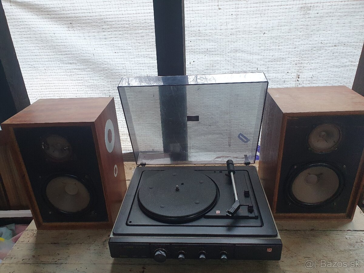 Predám gramofón značky tesla aj z reproduktormi je to v celkom zachovalom stave je tam aj ihla pre zberateľa v stave ako na foto .