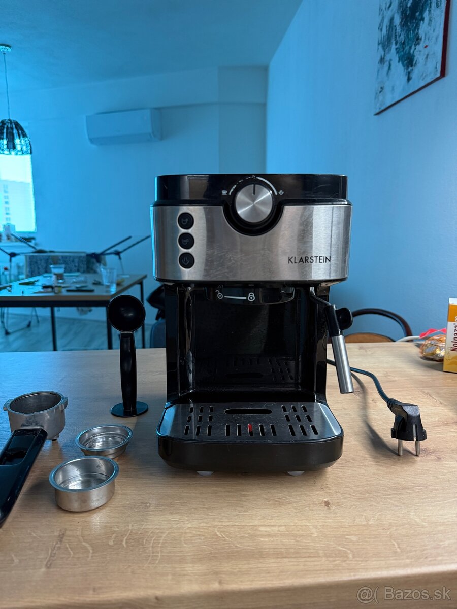 Predám pákový kávovar Klarstein. Je plne funkčný, pripraví výborné espresso a má aj trysku na penenie mlieka – mlieko napení krásne do hustej peny, ideálne na cappuccino alebo latte.