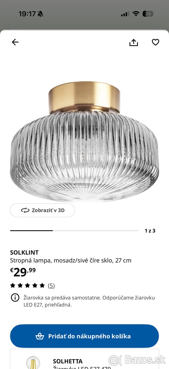 Predám stropnú lampu kupovanú Ikei.