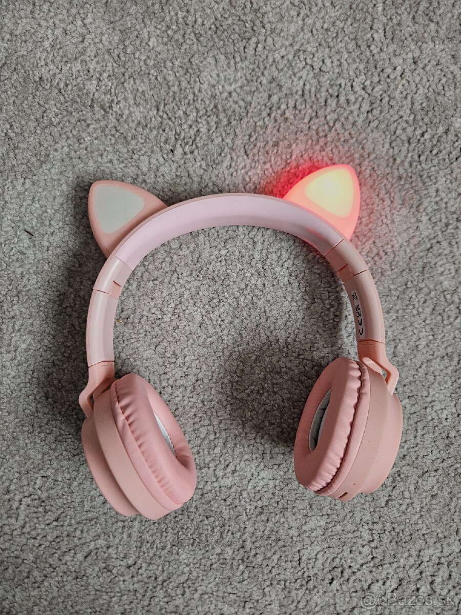 Ponúkam na predaj detské slúchadlá s uškami, ktoré blikajú. Zdroj zvuku: bluetooth/jack 3,5mm/micro sd karta.
