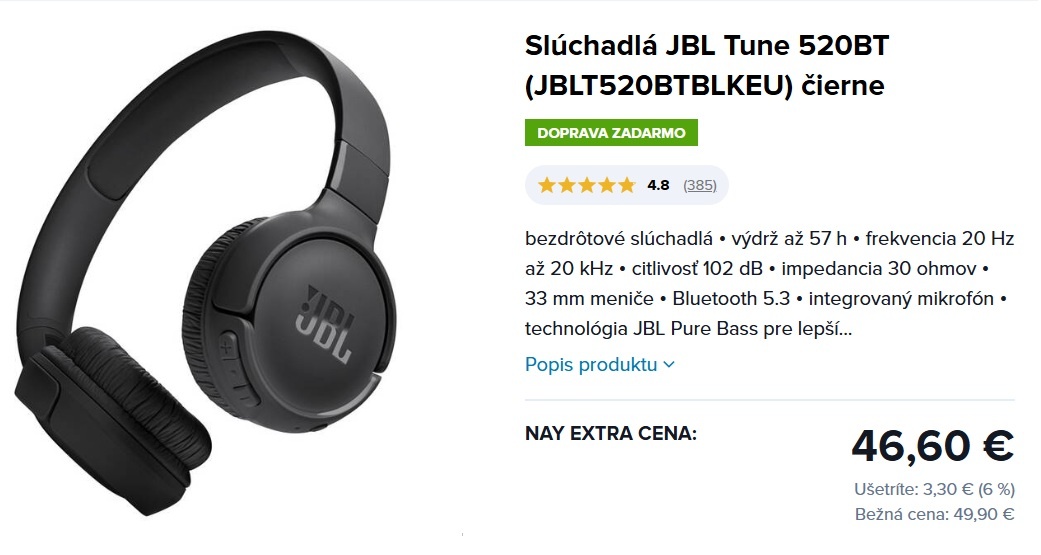 JBL Tune 520BT čierne - [24.1. 2026]Predám tieto slúchadlá, dostal som ich čisto nové, nepoužité.