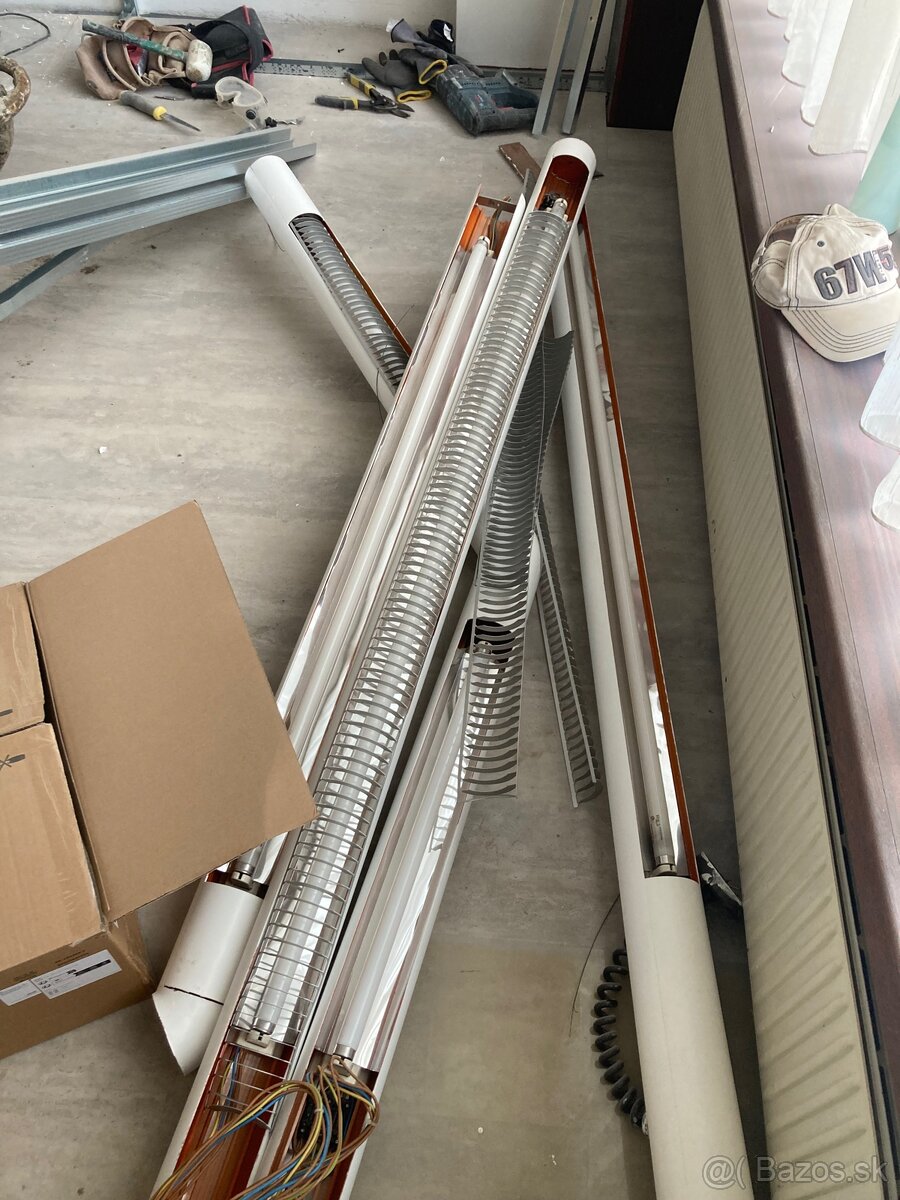 Je plne funkčná a kompletná dokym sa zvesila. Pred cca rokom bola namaľovaná na bielo, ale to sa dá dať dolu. Tie spojnice sa dajú dať inak takže lampa nemusí byt v takom patvare ako bola.