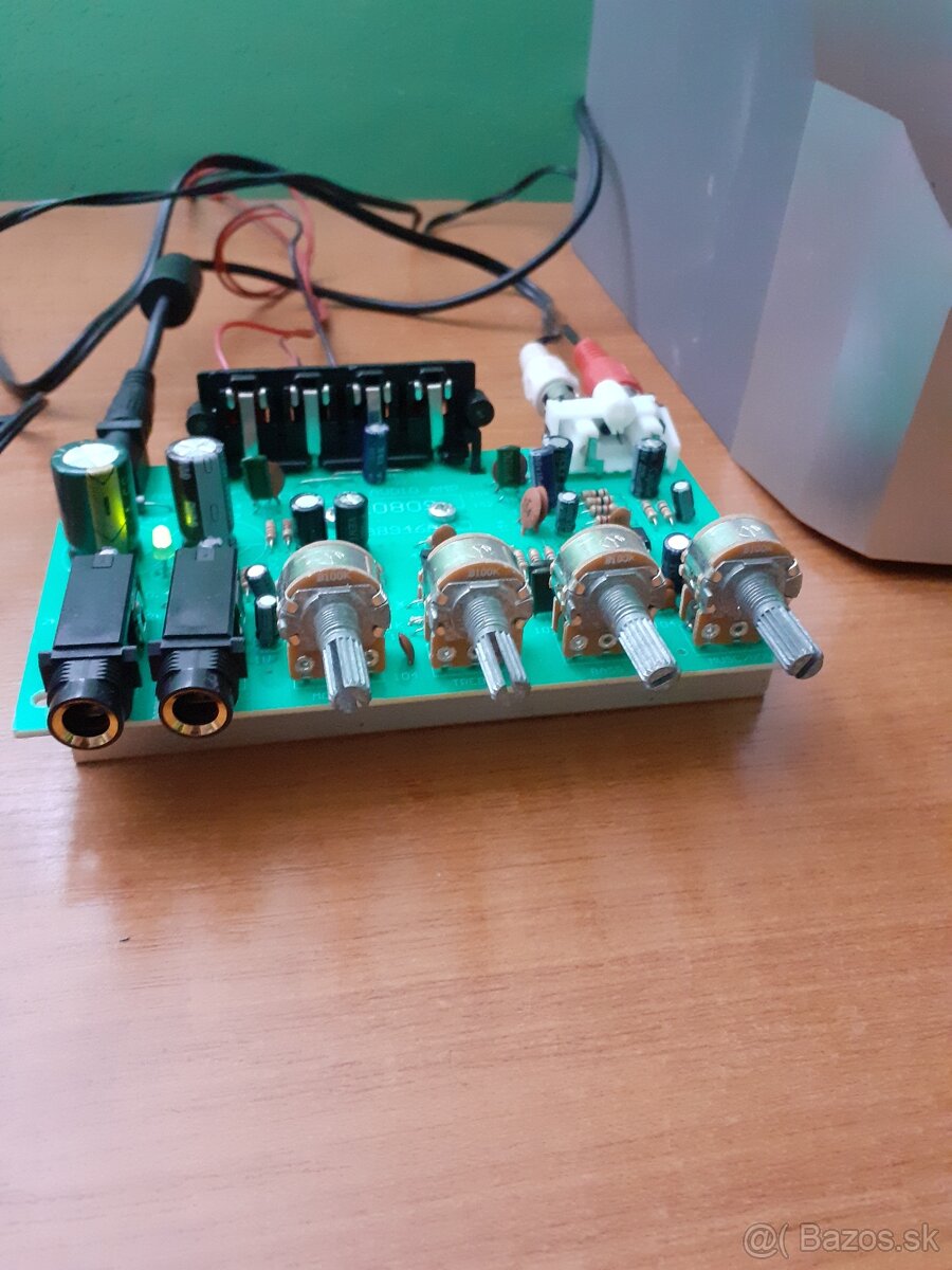 Predám Kompletná doska analógového stereofónneho zosilňovača 2x15W s korekciami. K dispozícii vstupy AUX+MIC Čip: TDA8946 Napájanie: DC 12-15V/ min3A rozmery 130x100x40mm vstupy AUX (CINCH) - citlivosť 300mV MIC (Jack) - vstup pre dynamický mikrofón výstup: svorky pre repro 2x8ohm
