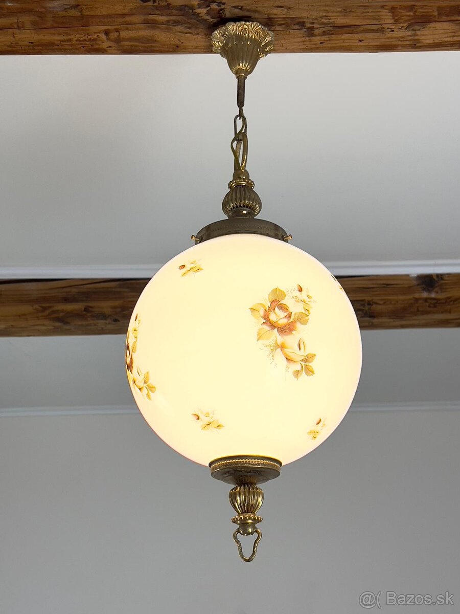 • Krásny dekor: Veľká mliečnobiela sklenená guľa je po celom obvode zdobená jemným motívom ruží v klasických hnedých a zelených tónoch.