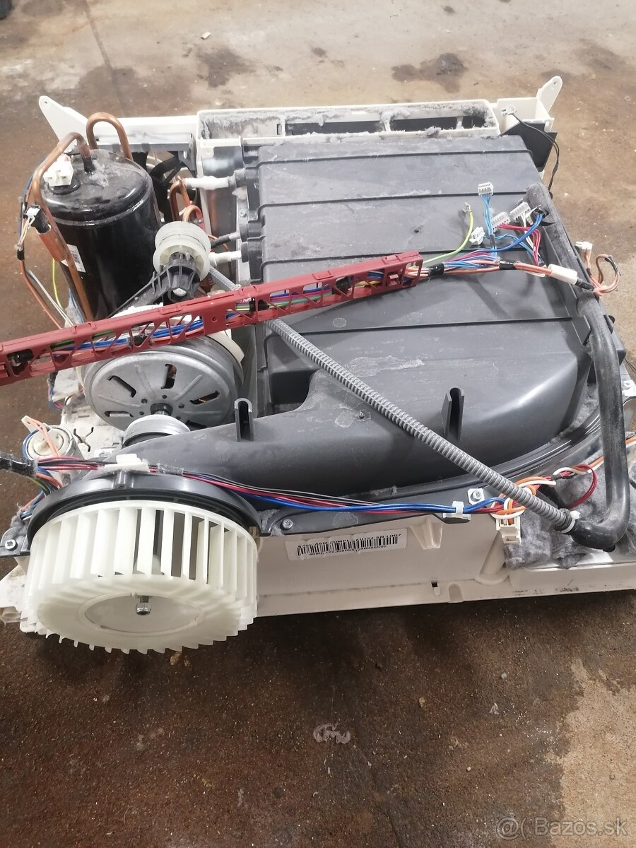 Chcipla tam hlavna riadiaca jednotka. Diera v procesore. Ostalo plne funkcne tepelne cerpadlo so spodkom aj s motorom ventilatora turbiny, predny ovladaci panel, pekny bubon, remen, suflik na vodu, sitko na prach, cerpadlo na vodu.
