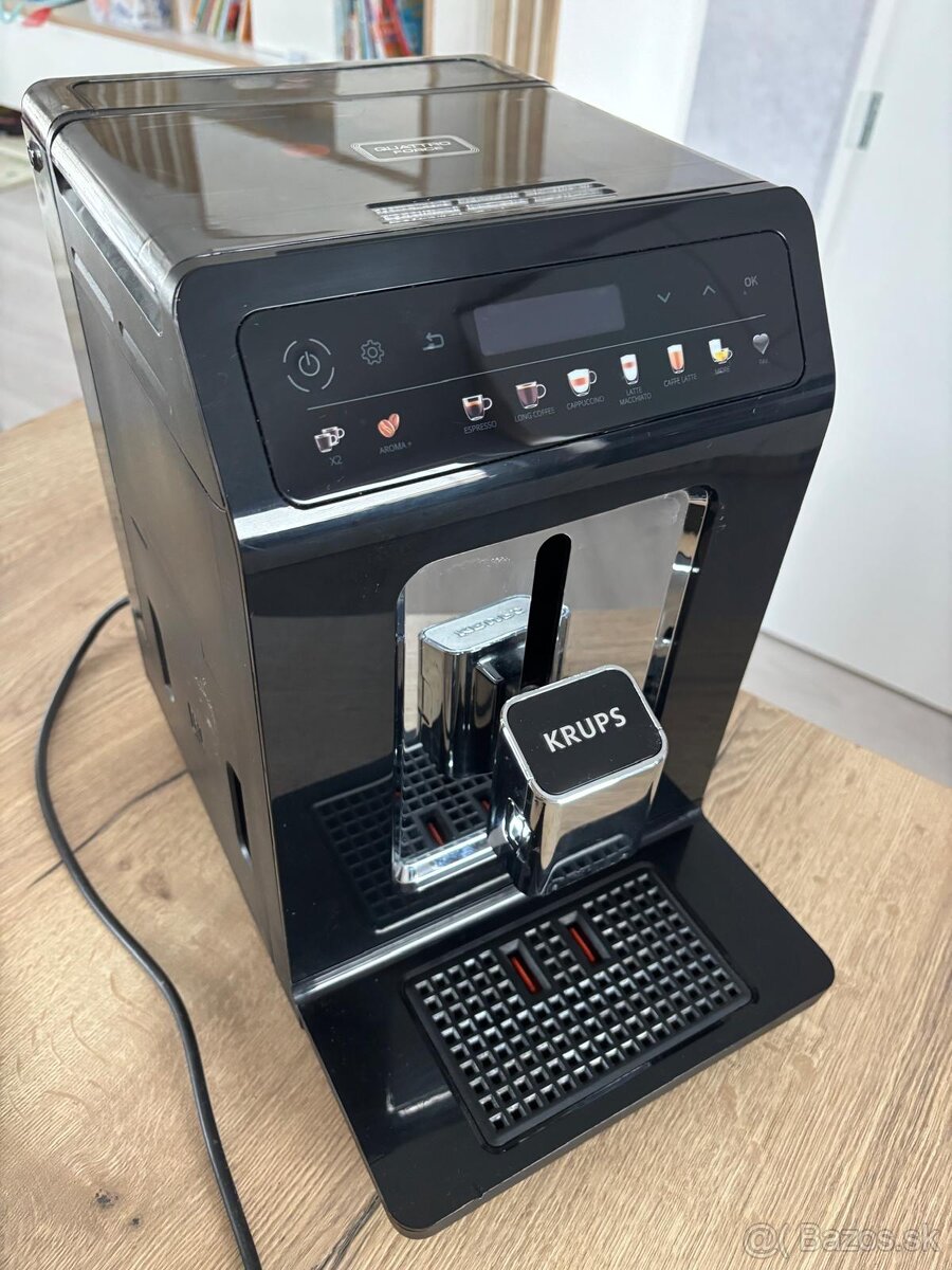 Kávovar Krups Evidence EA890110 - [16.2. 2026]Predám používaný automatický kávovar Krups Evidence, plne funkčný, zrejme je potrebné kávovar prečistiť - káva má po čase od preplachovania chuť akoby bola spálená.