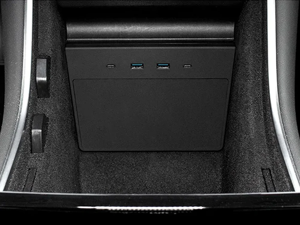 Usb hub 5 v 1 portoch, dashcam a sentry mode viewer pre Tesla Model 3 a Y (po máji 2020) Výrobok je základnej farbe čierna. Umožňuje používať až päť rôznych zariadení na účely nabíjania a údajov. dva predné KONEKTORY USB-A a dva KONEKTORY USB-C. Ďalší vertikálny KONEKTOR USB-A sa nachádza vo vnútri špeciálneho priestoru pre úložné priestory dashcam. Náhrada za Tesla Model 3 Y vyrobená po máji 2020.Dokonalá prepojená s konzolou Tesla, aby bola čistá a uprataná a neboli nikde káble, nie sú potrebné žiadne ďalšie USB rozbočovače, rozbočovače, prevodníky USB-A až USB-C. Schované skladovanie, krásne a veľkorysé, sa nebude javiť neusporiadané. Pekný dizajn vozidla, jednoduchá a pohodlná inštalácia. Magnetická sacia krycia doska, stlačte otvorené zatvorenie, skrytie úložného priestoru.