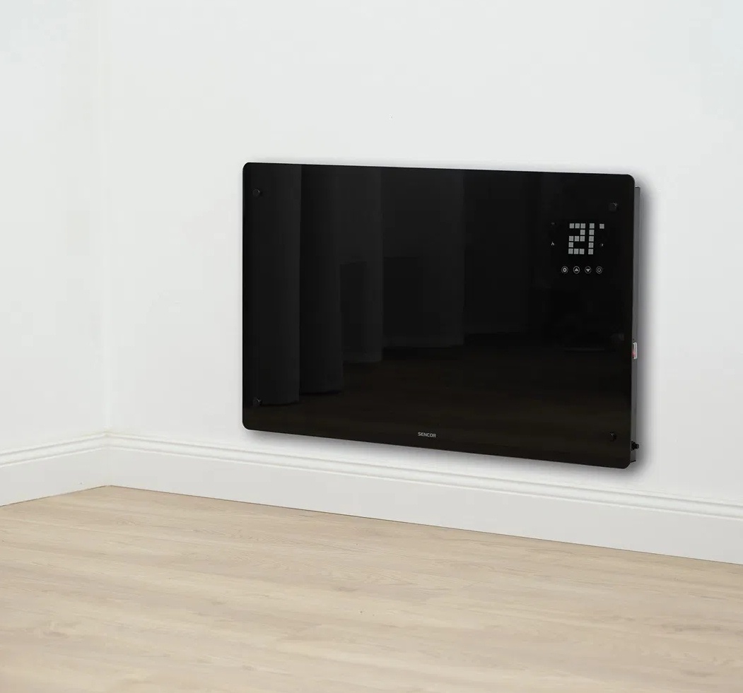 Predám nový nepoužívaný tepelný konvektor SENCOR SCF 4241BK, elegantný dizajn s prednou doskou z tvrdeného skla.