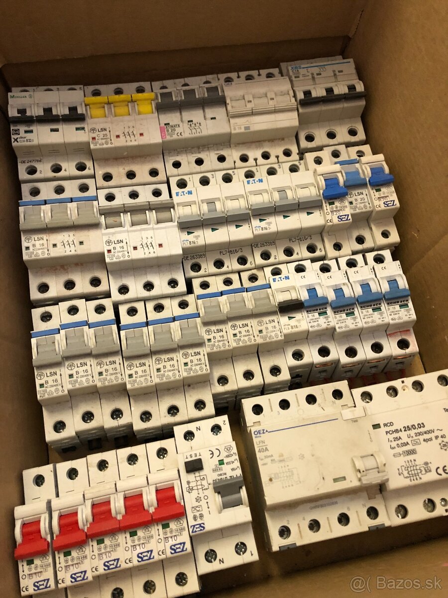 Na predaj elektroinštalačný materiál (ističe, prúdové chrániče). Niektoré sú nové, niektoré používané.