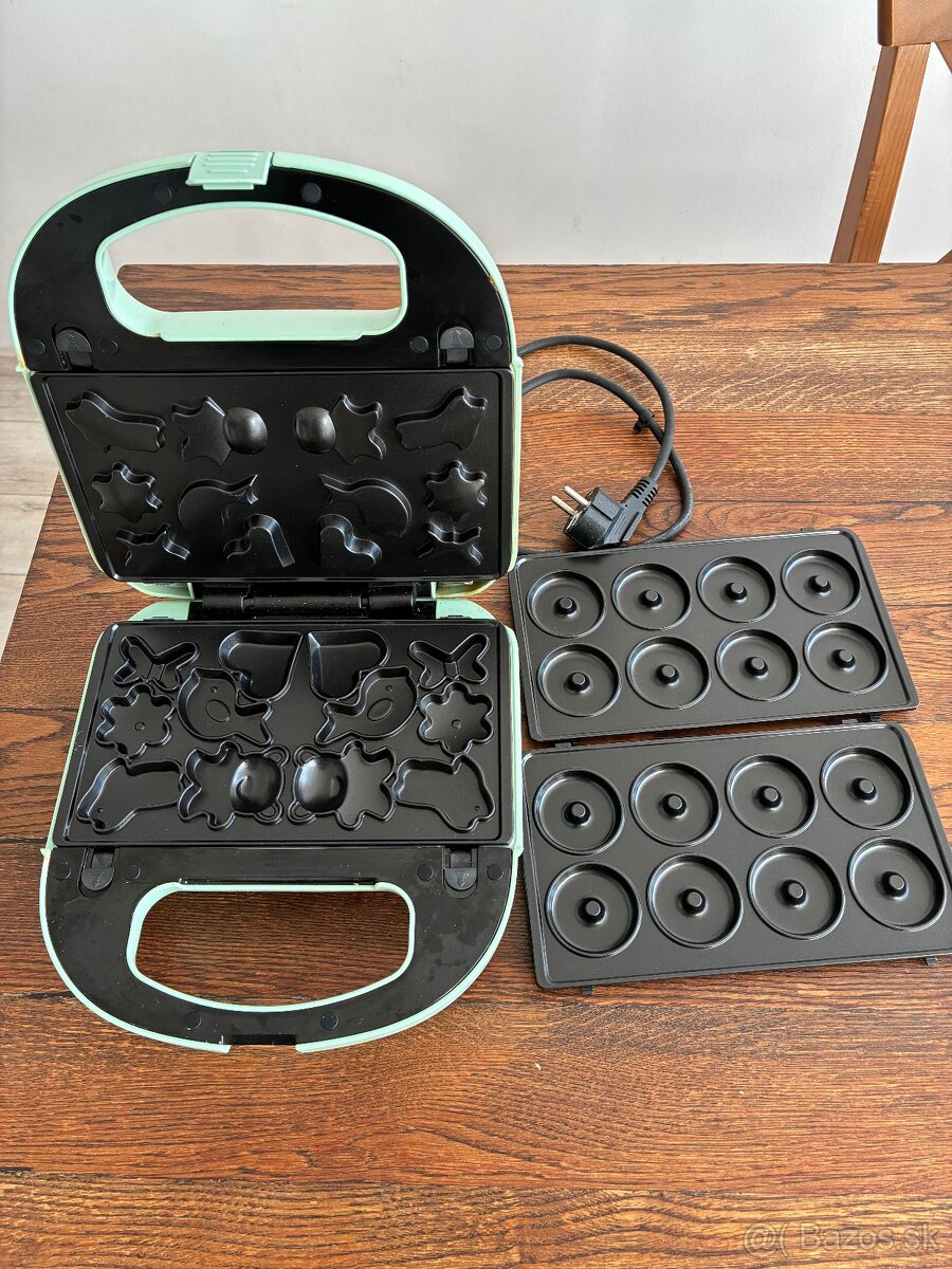 Waflovac SilverCrest s 2 druhmi platniciek: 1.v tvare zvieratiek a 2.v tvare mini donutov. Pouzite 1x. Cena 9€ + posta.