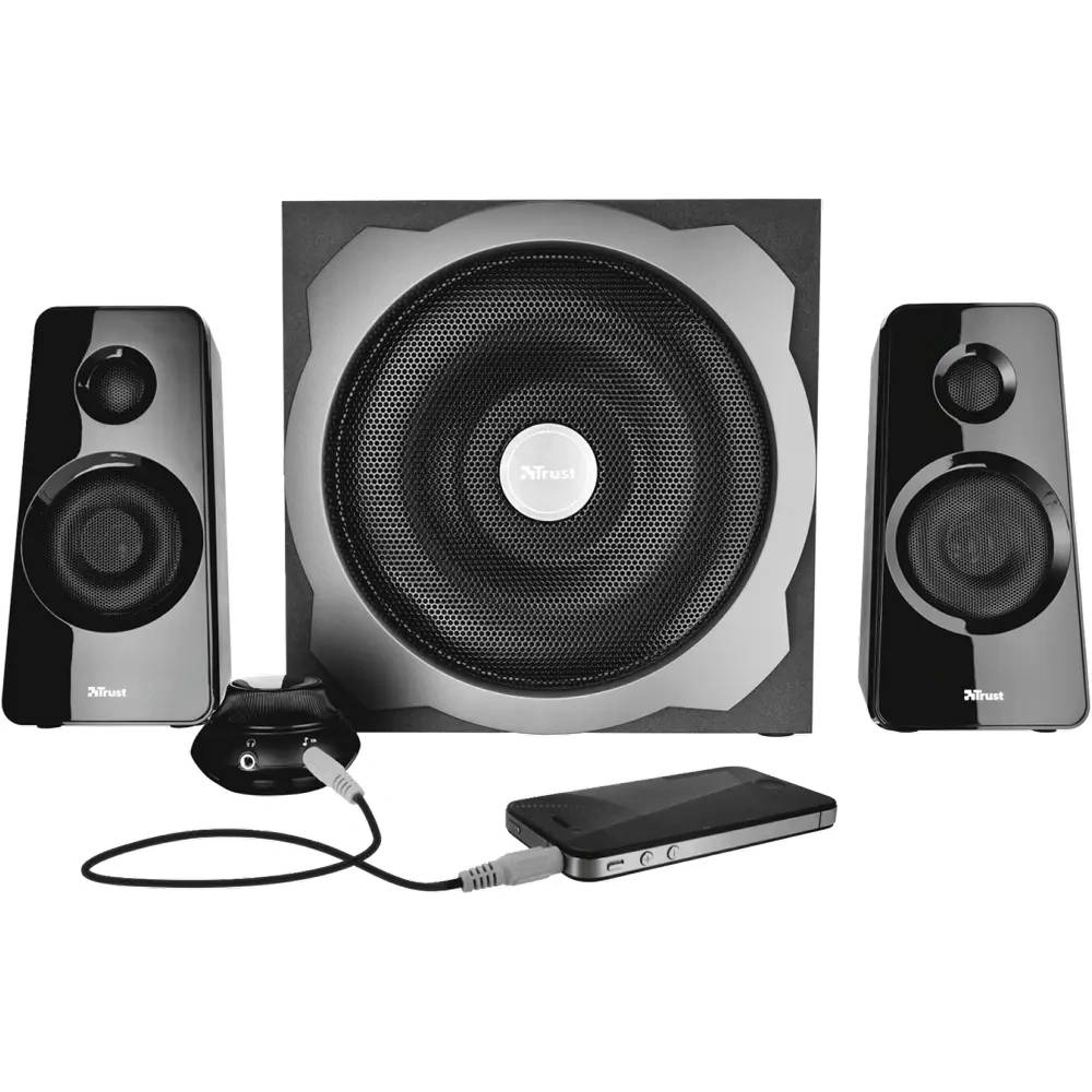 Repro sústava Trust Tytan 2.1 - [8.1. 2026]Malo používaná, ako nová. Vhodná k počítaču, možnosť prepojenia k telefónu cez 3,5mm jack.