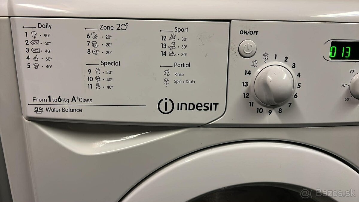 Práčka Indesit na 6kg prádla digitálna úsporná trieda A+
