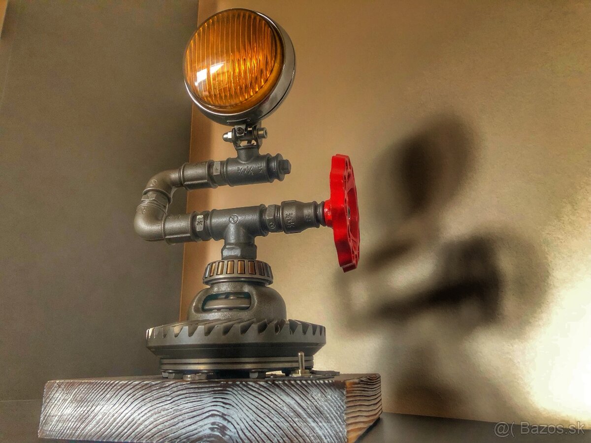 Dobrý deň, máme na predaj niečo z našej dielničky. Ide o túto unikátnu lampu zo starých vodárenských súčiastok doplnených o automobilové súčiastky. Povrchová úprava priesvitný lak.