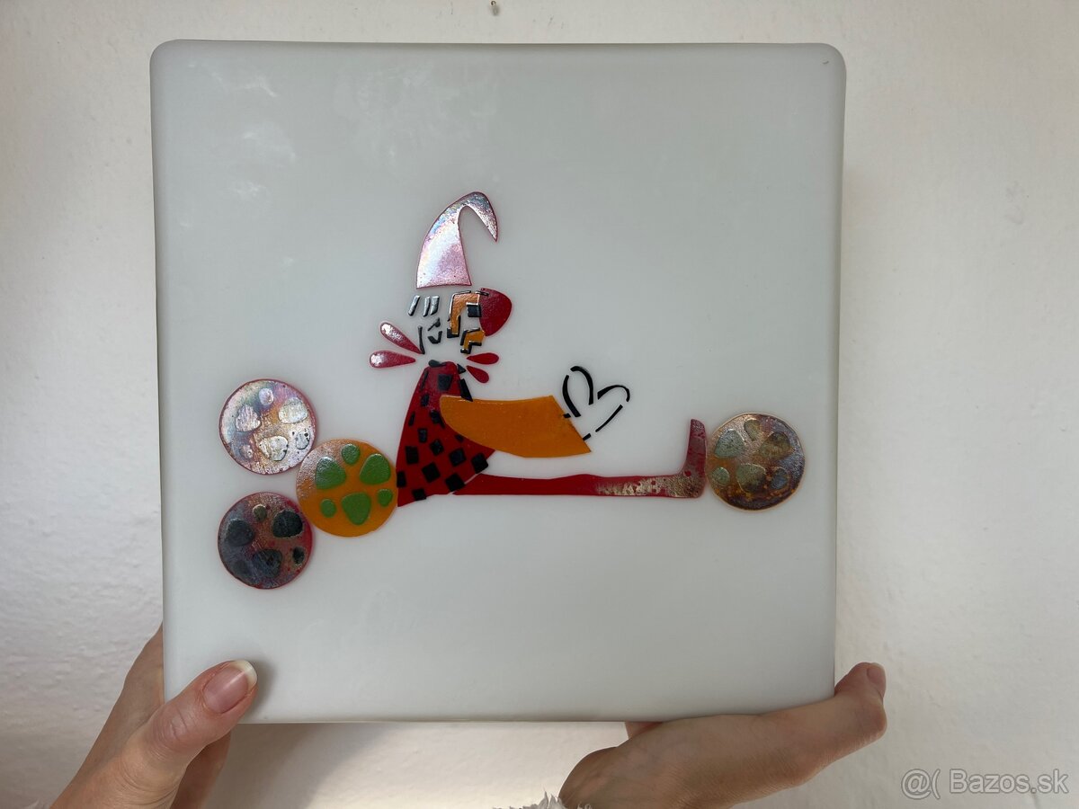 Predám sklenený luster z mliečneho skla s rozprávkovým motívom. Pätica E27 na jednu žiarovku. Original medené rozvody.