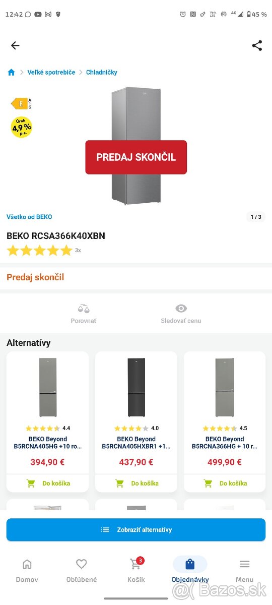 Kúpim šufliky do mrazničky "BEKO RCSA366K40XBN ", mne sa zlomil ,preto chcem náhradu.