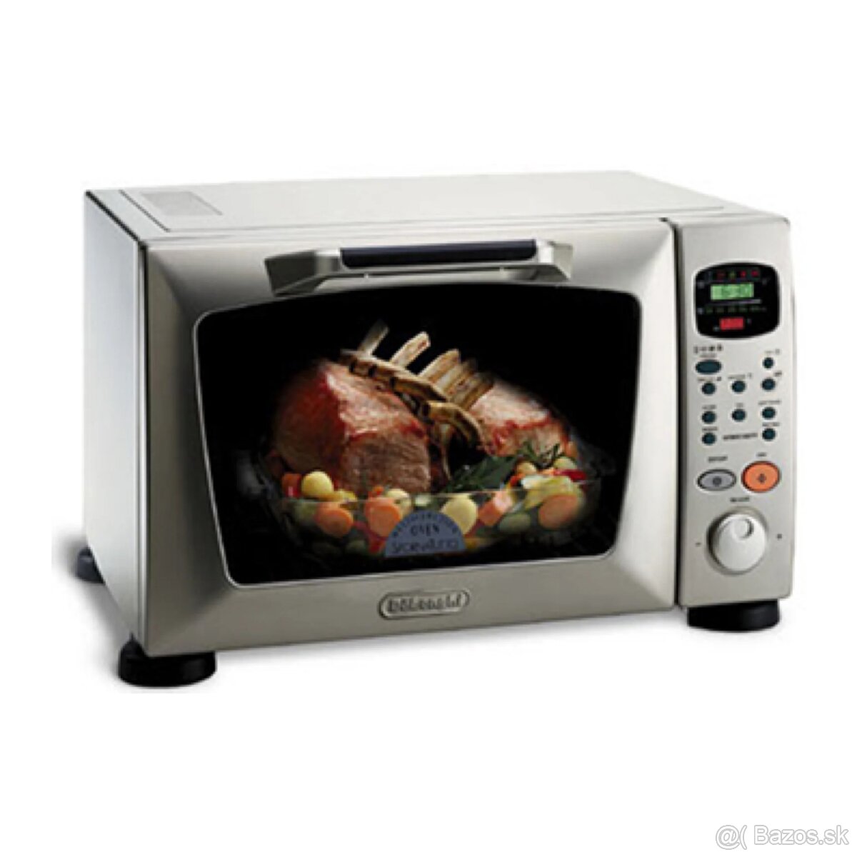 digitalna mikrovlnná aj klasicka rura v jednom, trojkombinacia, objem 30 l • Digitalny displej s vysokým rozlišením zobrazuje čas, teplotu termostatu, použitu funkciu a úroveň mikrovlnného výkonu • 5 kombinacíi pripravy, mikrovlnná rura, gril (max 1550 W), mikrovlnná rura + gril, len teplovzdusna rura, mikrovlnná + teplovzdusna rura Tlačítko „Sequence” umožňuje naprogramovat rozmrazenie a tepelnu úpravu potravin v jednom cykle • 5 úrovní mikrovlnného výkonu • Funkcia AUTO-DEFROST na rozmrazovanie • Dokonale plochý otočný tanier (31 cm) • Vypínač pre zastavenie otočného taniera • Termostat s rozsahom nastavenia teploty od 60 do 220 st.