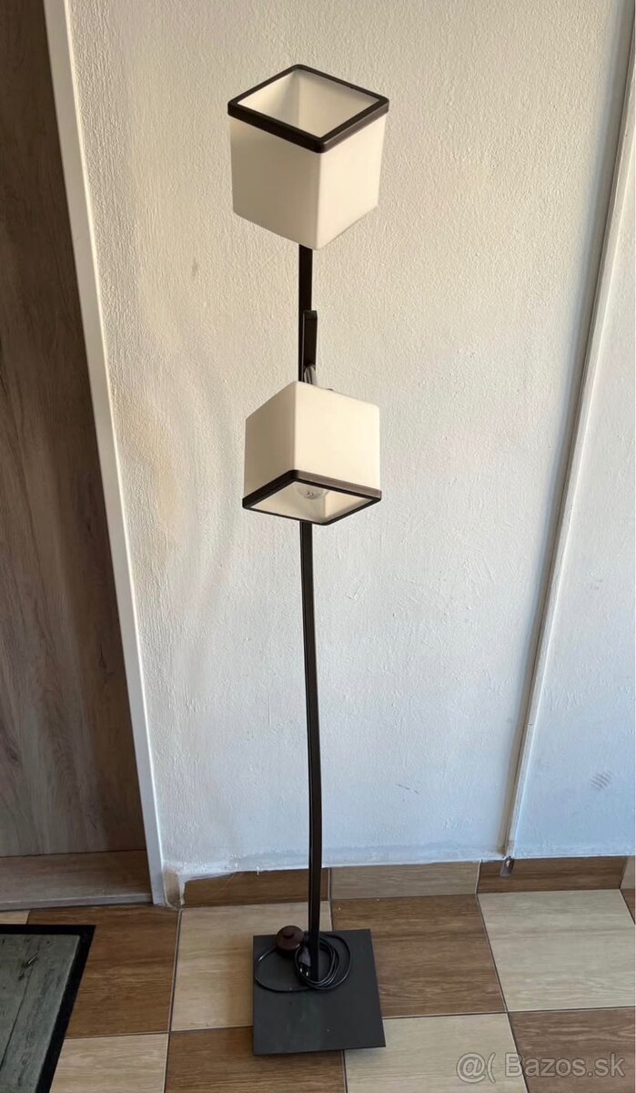 Predám elegantnú stojacu lampu v modernom dizajne. Kovová konštrukcia v tmavohnedej farbe, dve mliečne sklenené tienidlá. Zapínanie a vypínanie tlačidlom na zemi. Plne funkčná, veľmi dobrý stav. Vhodná do obývačky aj spálne. Osobný odber Košice, pri rýchlom jednaní dohoda na cene možná.