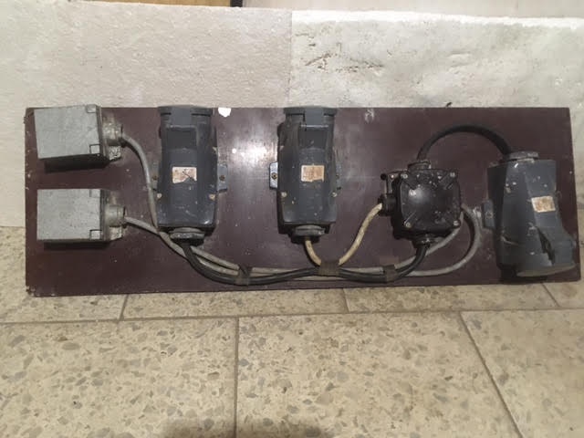 Predám zásuvkovú rozvodnicu s pertinaxovej platne s dvoma zásuvkami 32A/4, jednou zástrčkou 32A/4 a s dvoma hliníkovými zásuvkami 250V viď foto. Cena 15 Eur