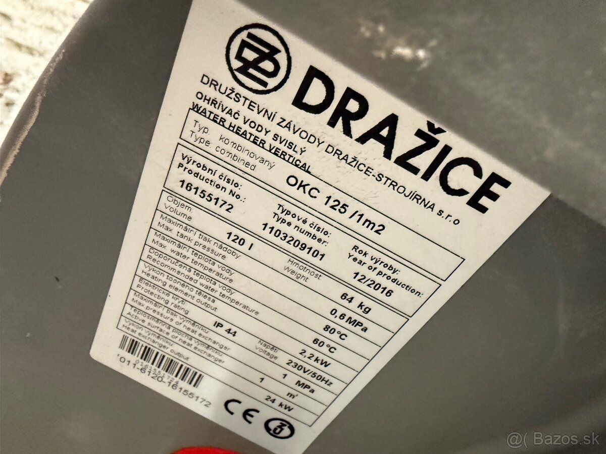 Predám minimálne využívaný kombinovaný bojler Dražice. Objem 120l. Ohrievač vody je určený pre vertikalnu inštaláciu .