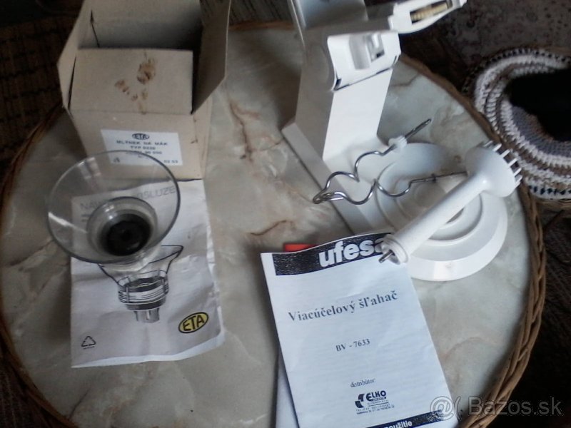 Predam nekompletny /diely/kuch.mixer UFESA,zachovale,skoro nepouzivane.K dispozicii to ,co je na fotkach,aj po dieloch,za vasu cenu-navrhnite.Mlyncek na mak je na starsie mixery ETA a je predany.Na SMS nereagujem.