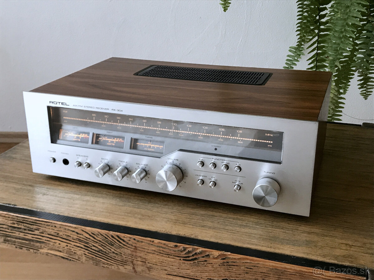 Ponúkam na predaj klasický japonský stereo receiver Rotel RX-304 zlatej éry hi-fi (cca 1979). Boli prerobené koncové stupne, celé vnútro prečistené, zvukovo hrá výborne, predný hliník kompletne prečistený a vyleštená vrchná hrana do chrómová, drevený kryt šiel do fólie.